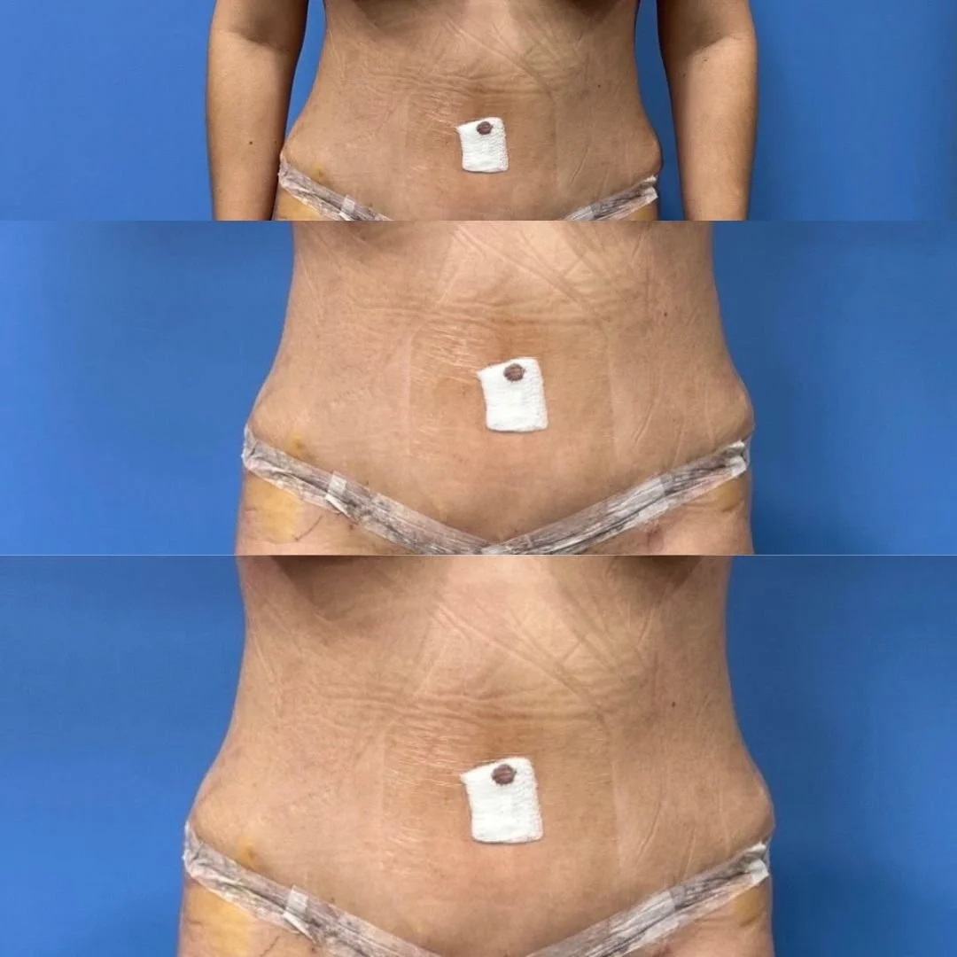 The client attended weekly sessions for three weeks after her "Mommy makeover" procedure, incorporating two days of self-administered Manual Lymphatic Drainage (MLD) at home. For optimal results, it is recommended to undergo at least one or two sessions two weeks to 10 days before the surgery. Post-operative sessions are ideally spaced 3-4 days apart to enhance the healing process following the procedure.